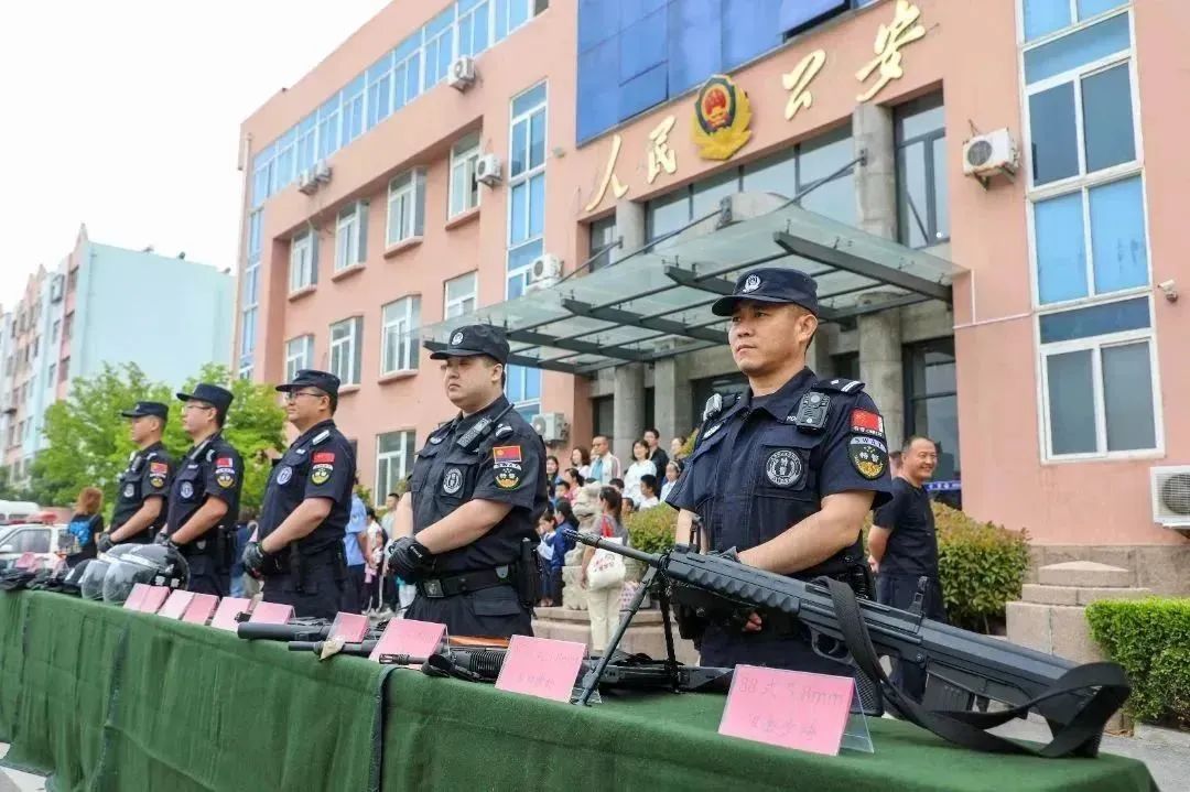 在治安大隊(duì),擒敵拳訓(xùn)練吼聲震天,盾牌操表演整齊劃一,警犬搜爆搜毒演示引人注目??腿藗冋J(rèn)真地欣賞著精彩表演,不時(shí)報(bào)以熱烈掌聲。