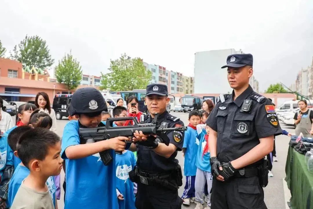 民警還向大家介紹了各式警用裝備、武器警械的特點(diǎn)和用途。在民警叔叔指導(dǎo)下,小志愿者們戴上鋼盔、拿起鋼槍,近距離接觸武器裝備,過足了“警察癮”。