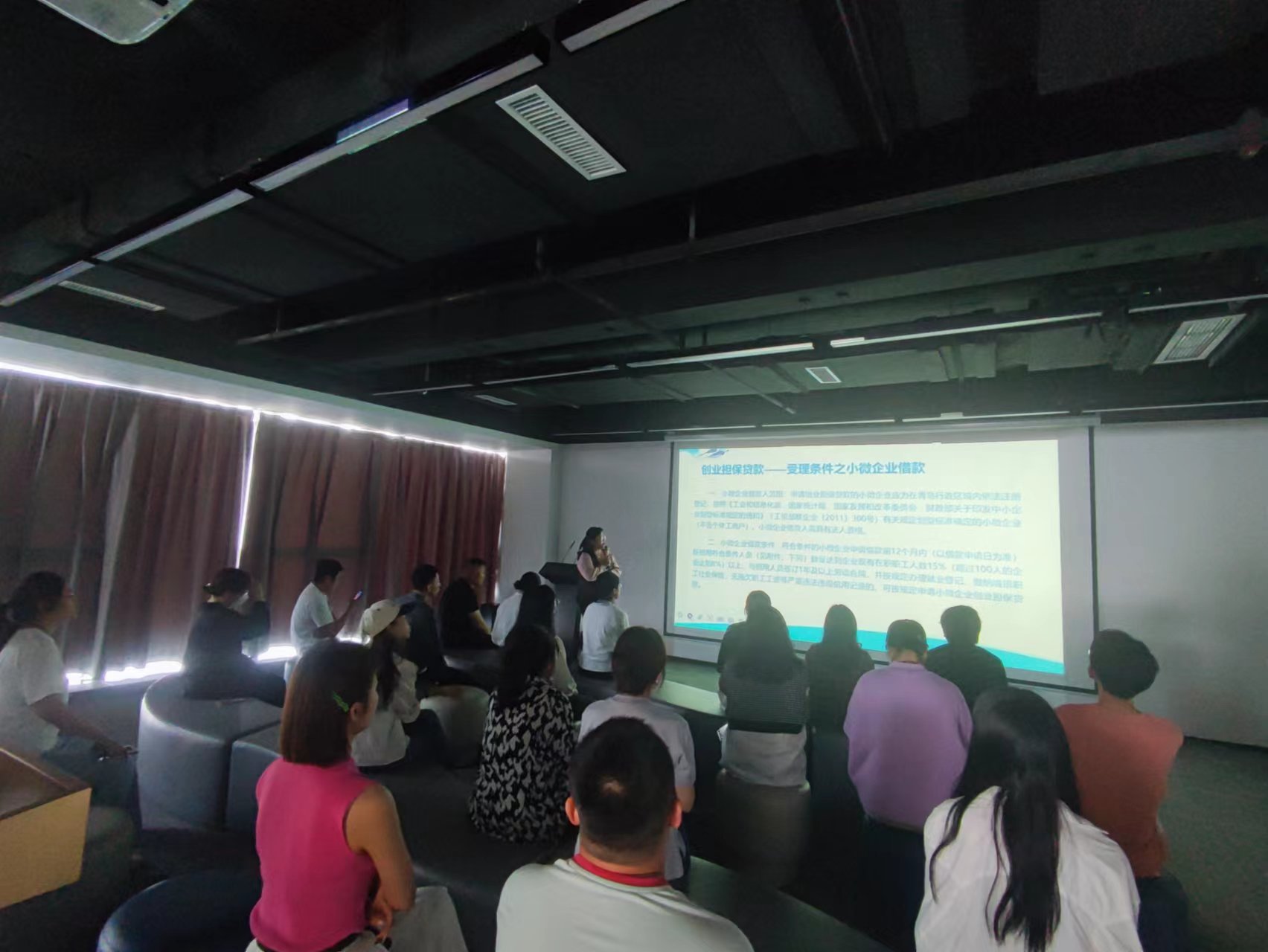 活動(dòng)中,來(lái)自合肥路街道的工作人員通過(guò)政策解讀、案例分享、互動(dòng)答疑等多種形式進(jìn)行了深入宣講,重點(diǎn)就企業(yè)創(chuàng)業(yè)補(bǔ)貼、擔(dān)保貸款、人才政策等內(nèi)容進(jìn)行了深刻解讀,對(duì)熱點(diǎn)、疑點(diǎn)、難點(diǎn)問(wèn)題進(jìn)行靈活解答,確保大家聽得懂、學(xué)得會(huì)、用得好?,F(xiàn)場(chǎng)氣氛活躍、互動(dòng)頻繁,大家積極交流,認(rèn)真提問(wèn),時(shí)不時(shí)傳來(lái)陣陣掌聲。