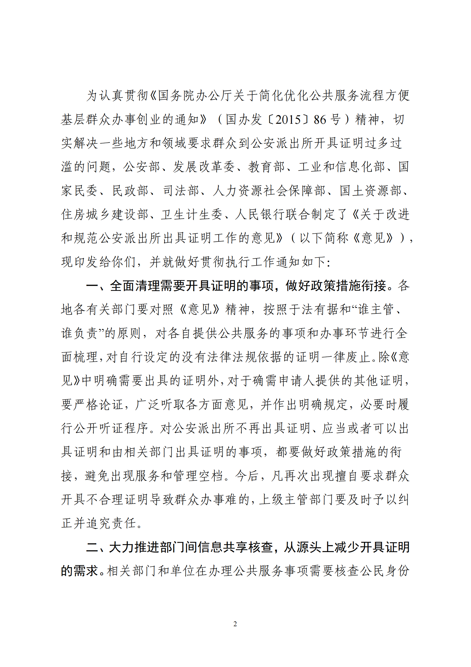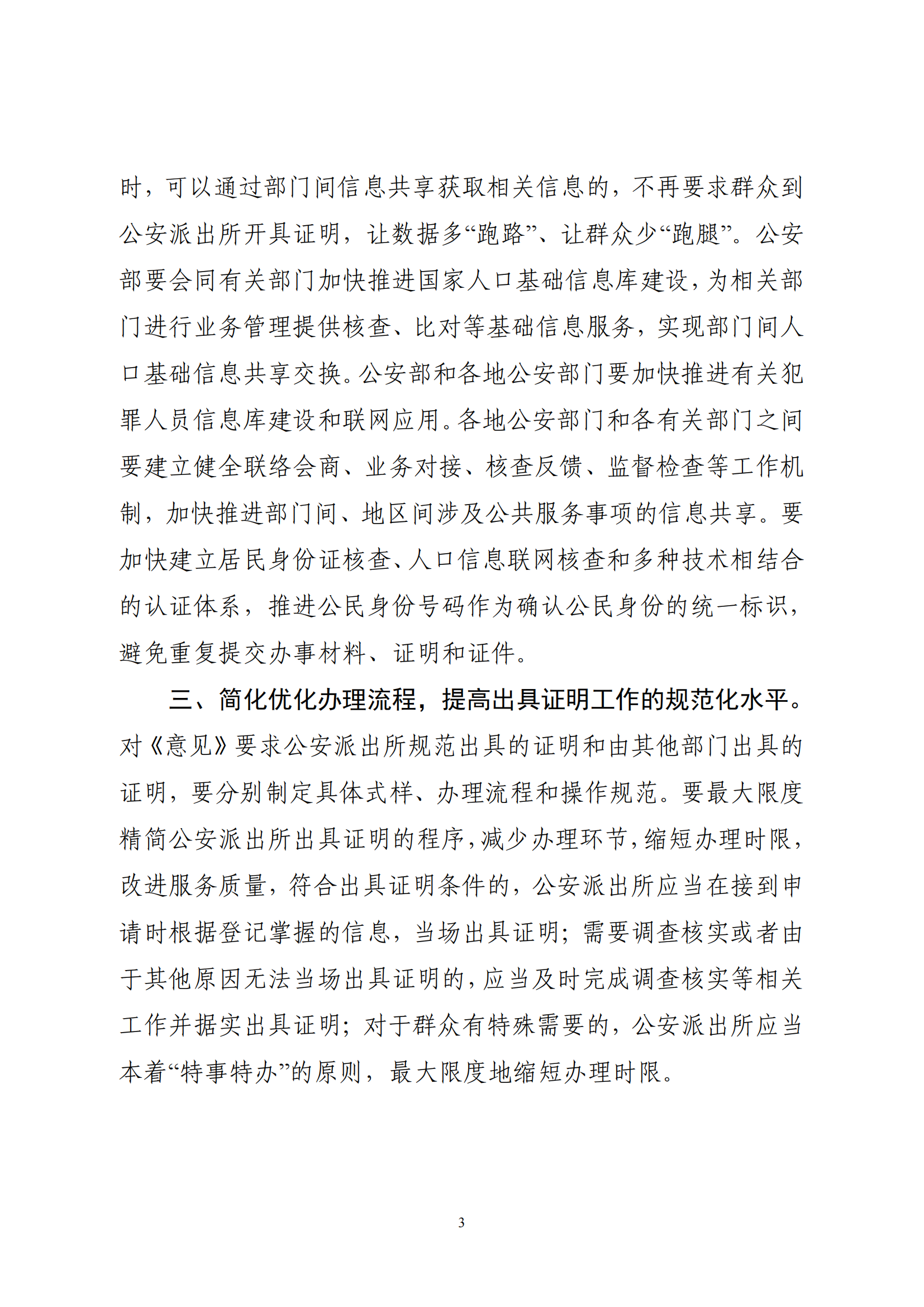 公安部等12部門關于印發(fā)《關于改進和規(guī)范公安派出所出具證明工作的意見》的通知
