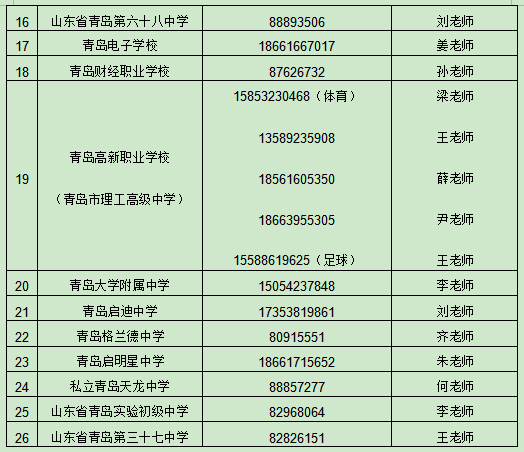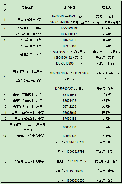 2024年青島市教育局直屬學(xué)校體育藝術(shù)特長(zhǎng)生招生咨詢聯(lián)系方式如下: