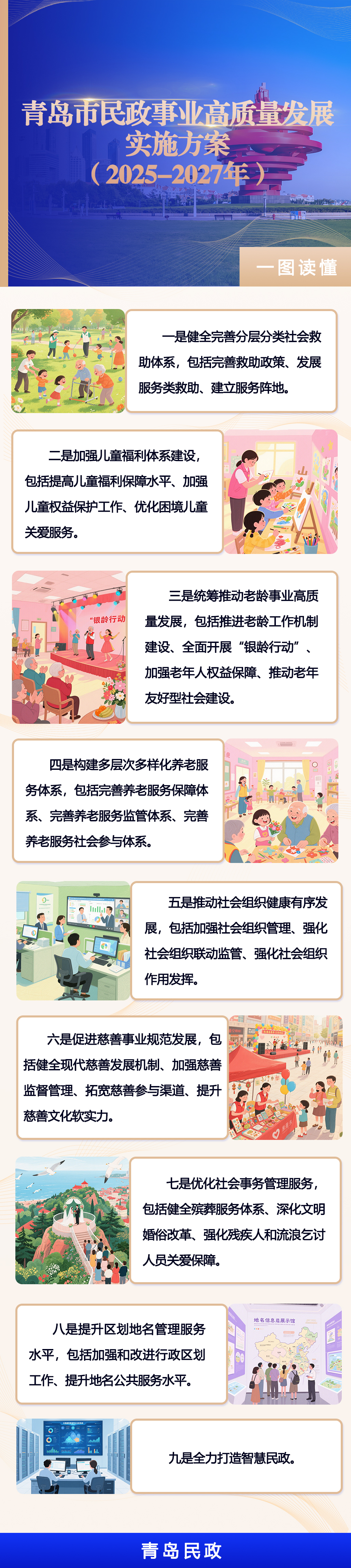 【圖片解讀】《青島市民政事業(yè)高質量發(fā)展實施方案(2025—2027年)》