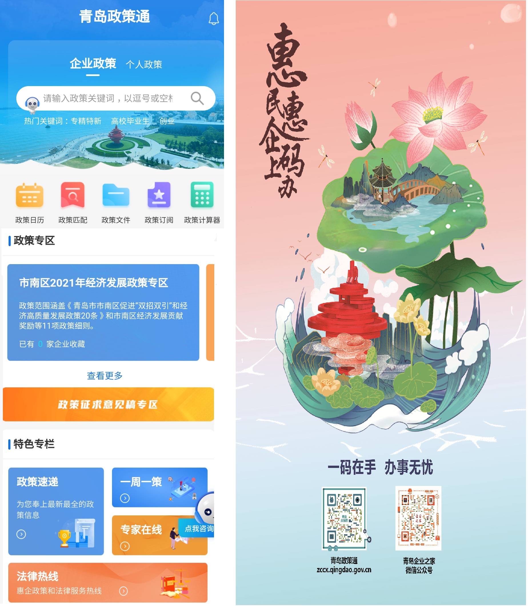 重點建設(shè)“青島政策通”平臺,實現(xiàn)惠企政策的發(fā)布、查詢和部分居民辦事服務(wù)事項辦理指南的查詢功能。印制“惠民惠企碼上辦”二維碼信息海報,在全市進行大規(guī)模宣傳推廣。群眾和企業(yè)可通過手機掃碼進入平臺,直接查詢申請使用各項政策,讓政策看得見,進一步提高公共政策的知曉率。