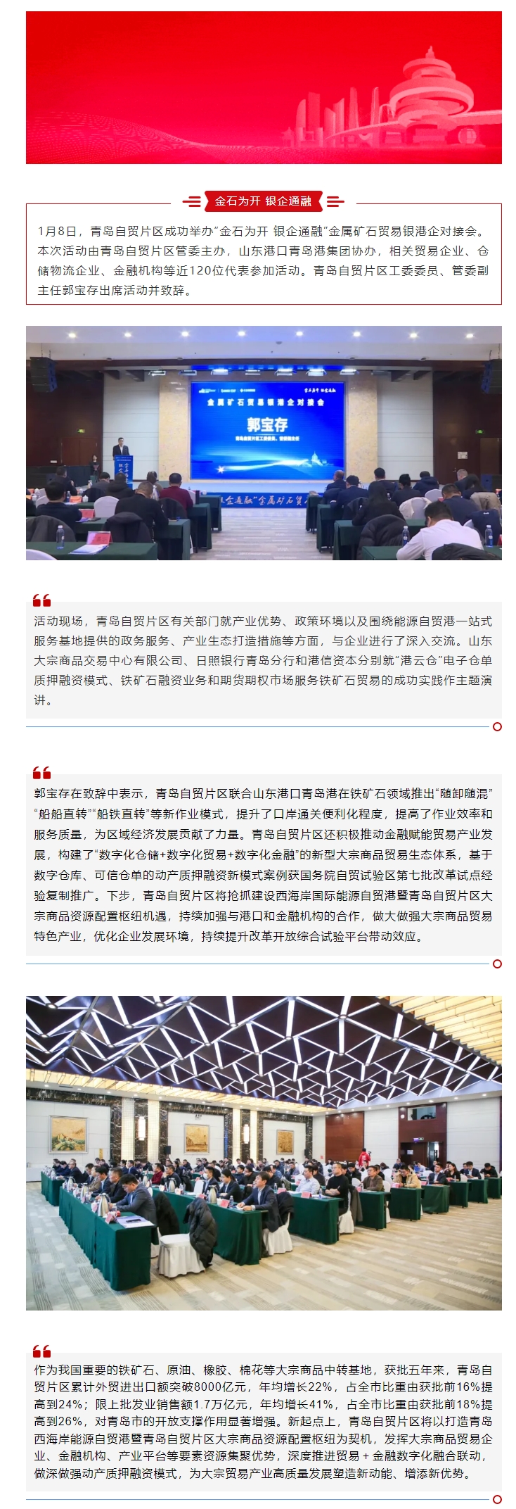 青島自貿片區(qū)舉辦“金石為開 銀企通融”金屬礦石貿易銀港企對接會