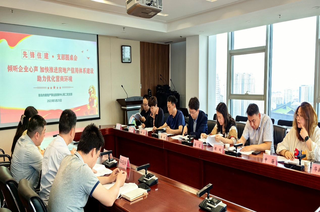 為深入學(xué)習(xí)貫徹習(xí)近平新時(shí)代中國(guó)特色社會(huì)主義思想主題教育,持續(xù)推進(jìn)黨建與業(yè)務(wù)深度融合,提升黨建工作質(zhì)量。5月25日,為給即將出臺(tái)的《山東省房地產(chǎn)開(kāi)發(fā)企業(yè)信用信息管理暫行辦法》更加準(zhǔn)確、全面的建議意見(jiàn),同時(shí)也為幫助開(kāi)發(fā)企業(yè)搞好企業(yè)信用建設(shè),提升企業(yè)競(jìng)爭(zhēng)力和品牌知名度,市房地產(chǎn)事業(yè)發(fā)展中心第二黨支部邀請(qǐng)保利、海信、綠地、綠城等8家房地產(chǎn)開(kāi)發(fā)企業(yè),在市房地產(chǎn)事業(yè)發(fā)展中心1821會(huì)議室組織召開(kāi)了“先鋒住建·支部圓桌會(huì)”。