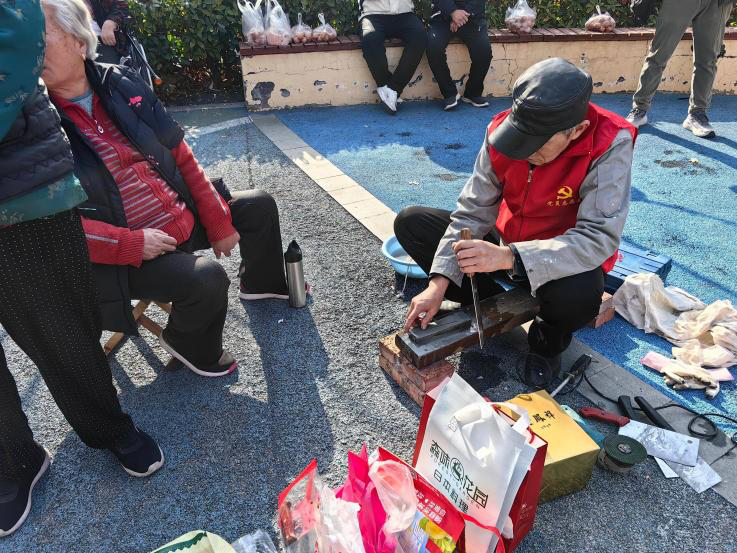 為切實(shí)解決居民日常生活中的實(shí)際需求,活動(dòng)設(shè)置了多個(gè)便民服務(wù)攤位。便民維修區(qū),來(lái)自各單位的志愿者組成維修隊(duì)伍,免費(fèi)為住戶(hù)檢修、維修各類(lèi)小家電,用專(zhuān)業(yè)技能為居民排憂(yōu)解難;生活惠民區(qū),由青鐵智管公司補(bǔ)貼差價(jià)推出的低價(jià)新鮮蔬菜、雞蛋售賣(mài)攤位深受住戶(hù)青睞,將實(shí)惠直接送到居民手中;愛(ài)心磨菜刀攤位前更是排起了長(zhǎng)隊(duì),志愿者師傅憑借精湛的磨刀技藝,讓居民家中的舊菜刀 “重?zé)ㄤh芒”,贏得一致好評(píng)。