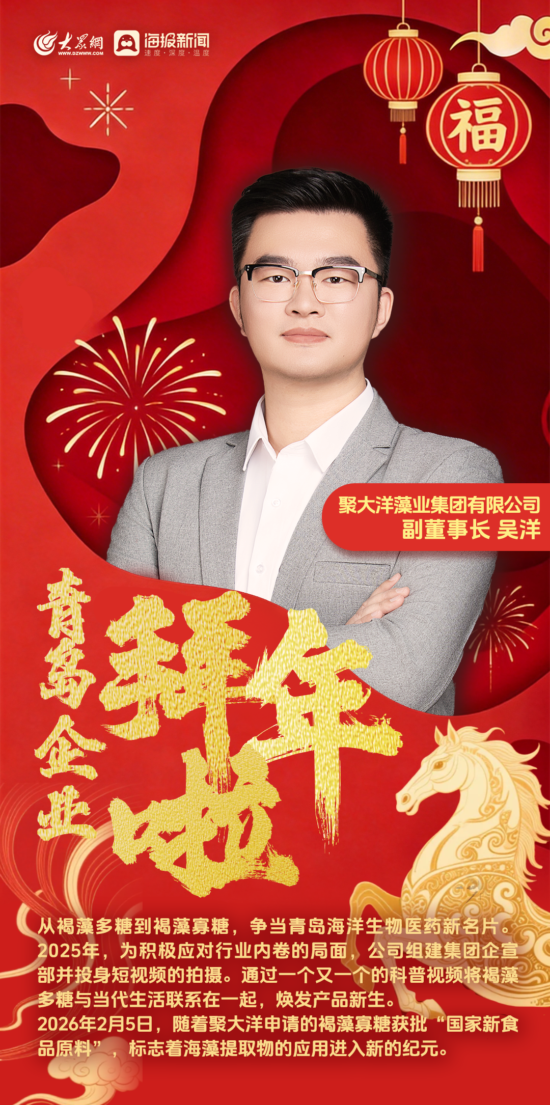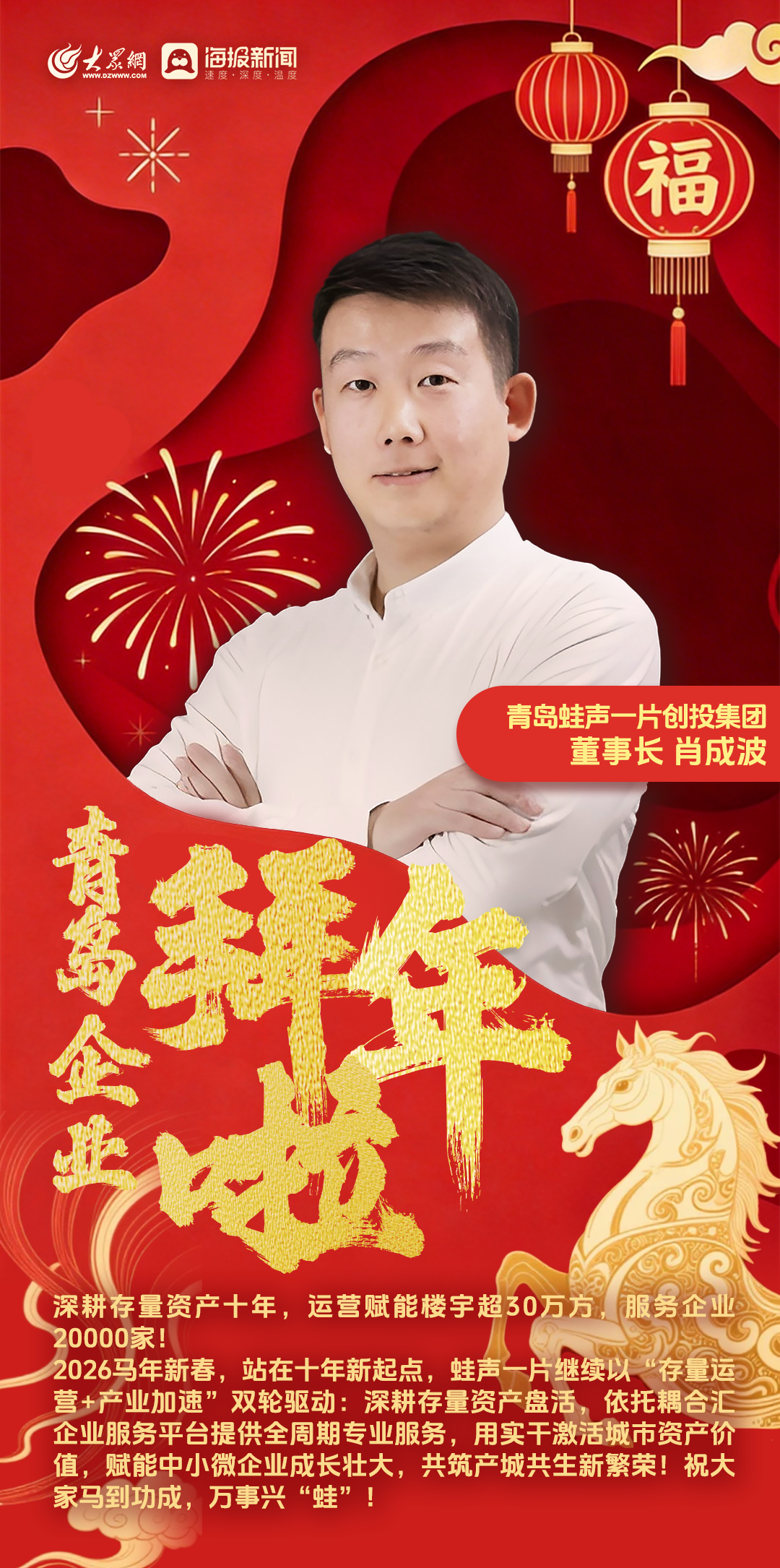 當(dāng)時(shí)代浪潮奔涌于黃海之畔,一群人以膽識為帆、創(chuàng)新為槳,在這片熱土上開拓商業(yè)的疆界。他們是城市的造夢者,用智慧點(diǎn)亮產(chǎn)業(yè)的星圖;也是經(jīng)濟(jì)的掌舵人,以實(shí)干詮釋“青島智造”的力量。青島始終把對企業(yè)家的尊重落到實(shí)處——無論是設(shè)立“企業(yè)家日”,還是持續(xù)打造市場化、法治化、國際化的一流營商環(huán)境,都成為企業(yè)家放心投資、安心經(jīng)營、順心發(fā)展的堅(jiān)實(shí)后盾。截至2025年底,全市民營經(jīng)營主體已突破206萬戶,正是信心與活力的生動(dòng)注腳。馬年新春,大眾網(wǎng)·海報(bào)新聞攜手青島企業(yè)家朋友,向您致以誠摯的祝福。每一張面孔背后,都是一段乘風(fēng)破浪的創(chuàng)業(yè)故事;每一句問候之中,都凝聚著與青島共赴嶄新春天的期盼。讓我們一起,聆聽這份來自奮斗者的新年心聲。