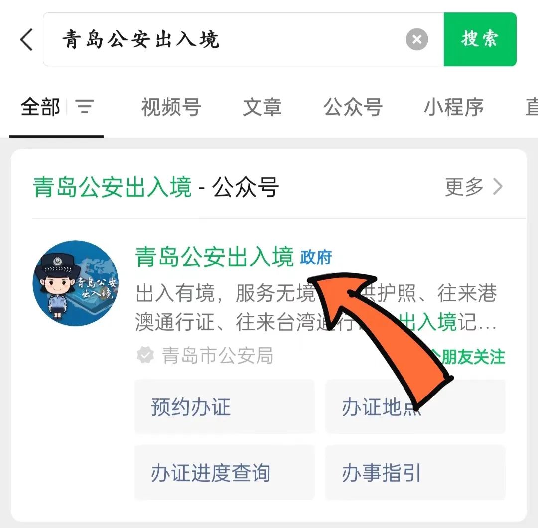第一步:關(guān)注“青島公安出入境”微信公眾號