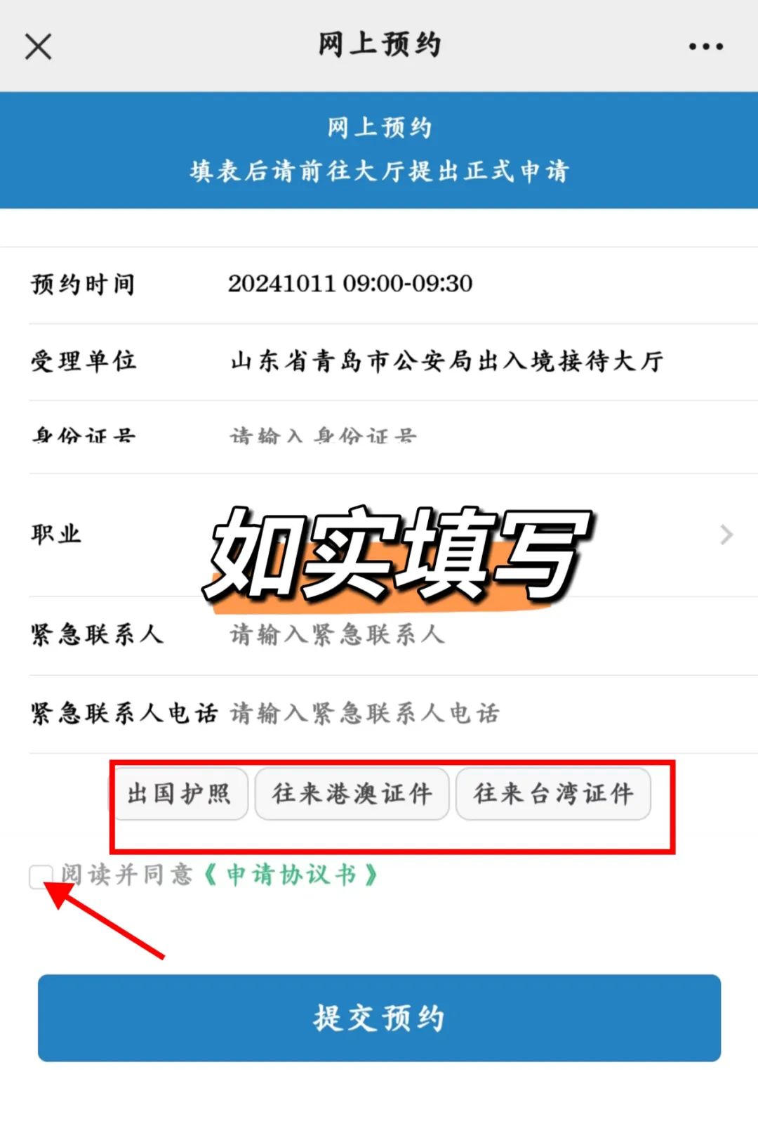 第三步:如實填寫申請信息,點擊“閱讀并同意”,點擊“提交預約”