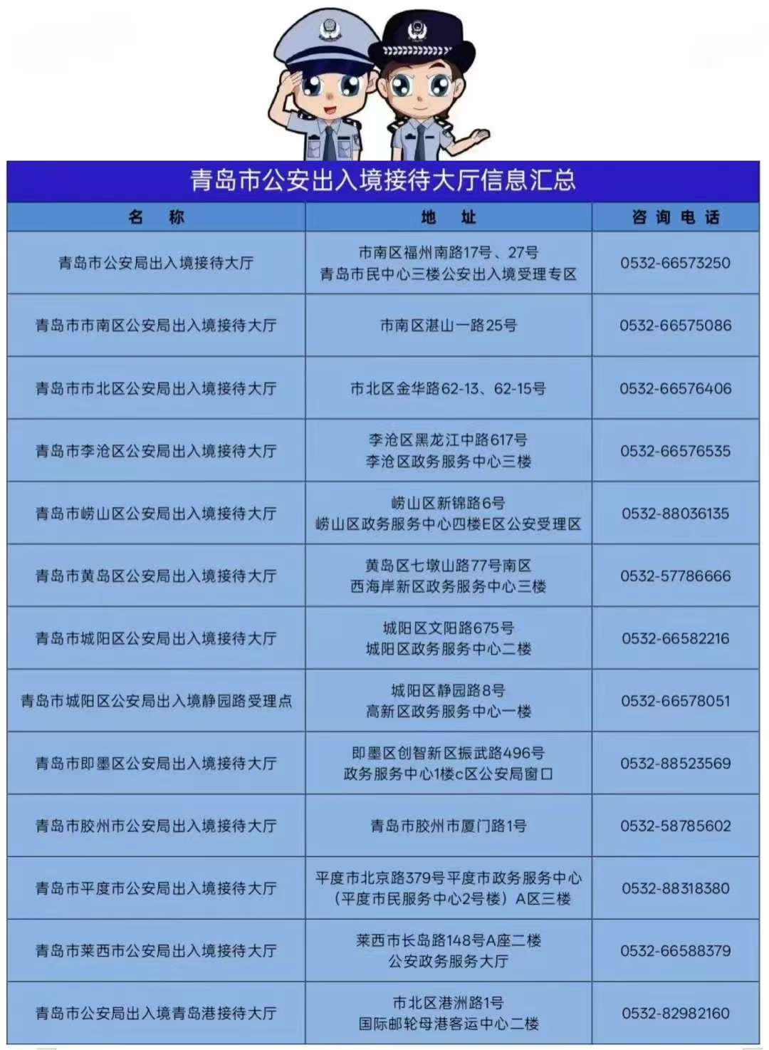 附件:全市公安出入境接待大廳信息匯總