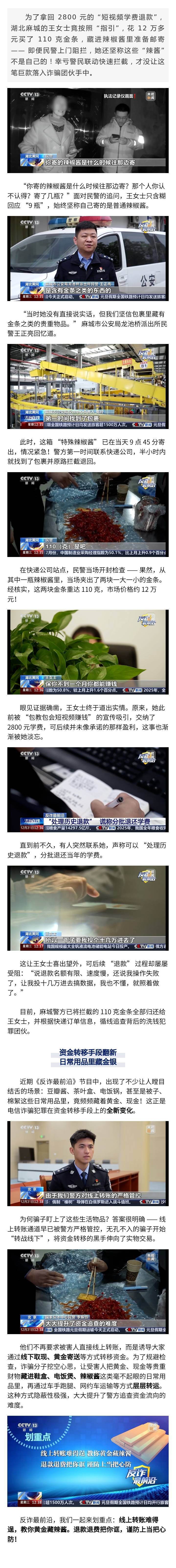 【反詐預(yù)警】深陷退款騙局 又把黃金藏辣醬 被騙兩茬