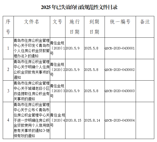 經(jīng)對行政規(guī)范性文件進行清理,市住房公積金管理中心2025年已失效的行政規(guī)范性文件4件,現(xiàn)行有效的行政規(guī)范性文件5件。