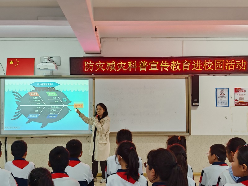防災減災宣傳周期間,志愿者走進北仲路第二小學的課堂,詳細講解了風暴潮、海浪、海嘯、赤潮、裂流等海洋災害現(xiàn)象、預警信號及科學避險方法。針對青島沿海頻發(fā)的風暴潮災害和離岸流對青少年的潛在威脅,重點強調了識別災害前兆、解讀預警信息和掌握應急技能的重要性,引導樹立“知海、懂海、避險于先”的安全意識,提升應急自護能力。