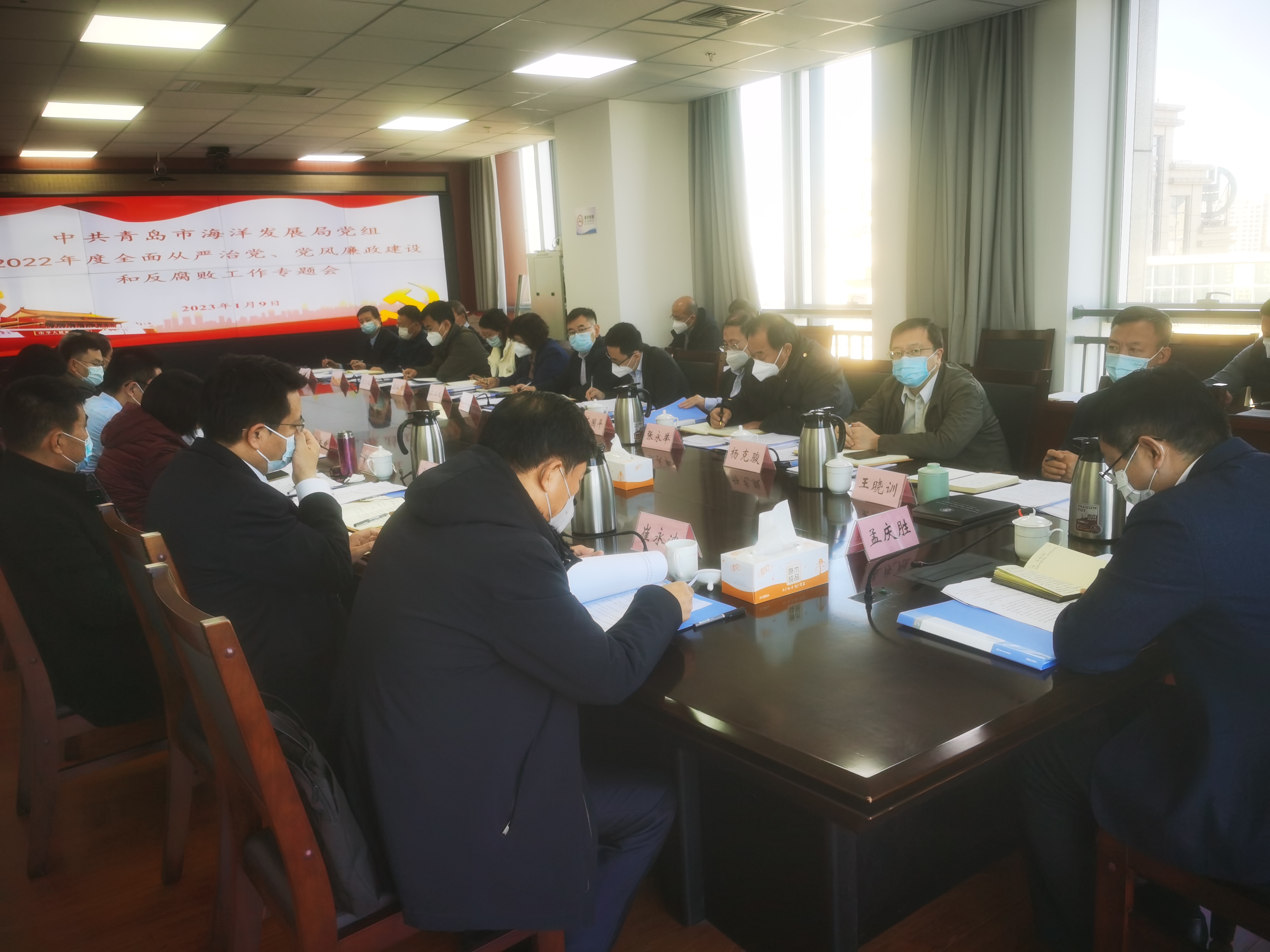 1月9日,市海洋發(fā)展局黨組會同市紀委監(jiān)委派駐第十七紀檢監(jiān)察組召開全面從嚴治黨、黨風(fēng)廉政建設(shè)和反腐敗工作專題會議,回顧總結(jié)2022年全面從嚴治黨、黨風(fēng)廉政建設(shè)和反腐敗工作情況,對2023年推進全面從嚴治黨、黨風(fēng)廉政建設(shè)和反腐敗工作進行部署安排。市海洋發(fā)展局黨組書記、局長孟慶勝主持會議,市紀委監(jiān)委派駐第十七紀檢監(jiān)察組組長崔永波和市海洋發(fā)展局黨組成員出席會議,副局級領(lǐng)導(dǎo)干部、機關(guān)處室和局屬單位負責(zé)人等列席會議。