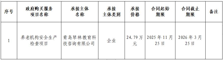 青島市民政局2025年度政府購買服務項目承接主體(養(yǎng)老機構安全生產(chǎn)檢查項目)
