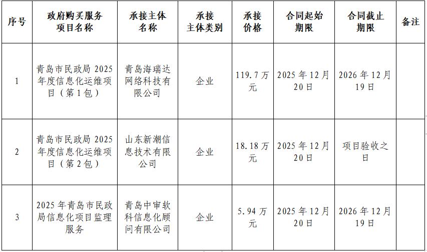 青島市民政局2025年度政府購買服務項目承接主體(政務信息化運維項目)