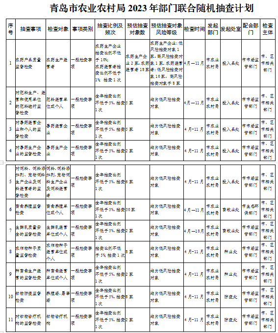 2.青島市農(nóng)業(yè)農(nóng)村局2023年部門聯(lián)合隨機(jī)抽查計(jì)劃