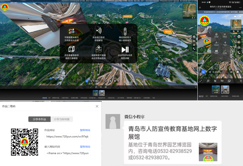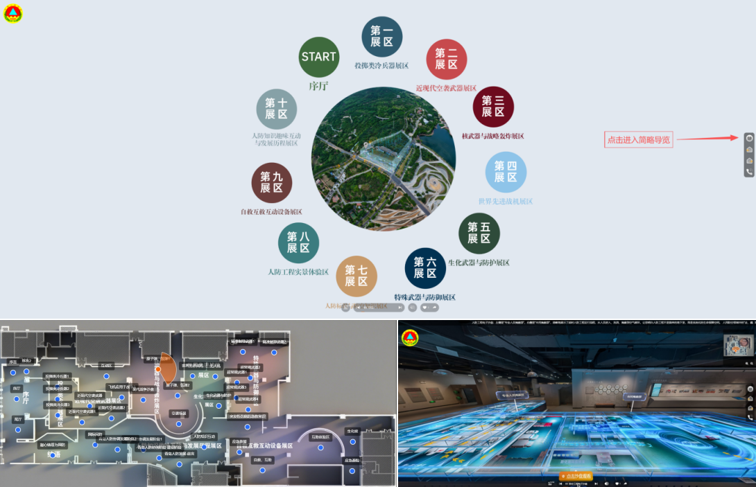 (青島市人防宣傳教育基地網(wǎng)上數(shù)字展館主場景,內(nèi)置交互式沙盤地圖,支持一鍵跳轉(zhuǎn)與實時定位,觀眾可獲得全景視覺體驗)