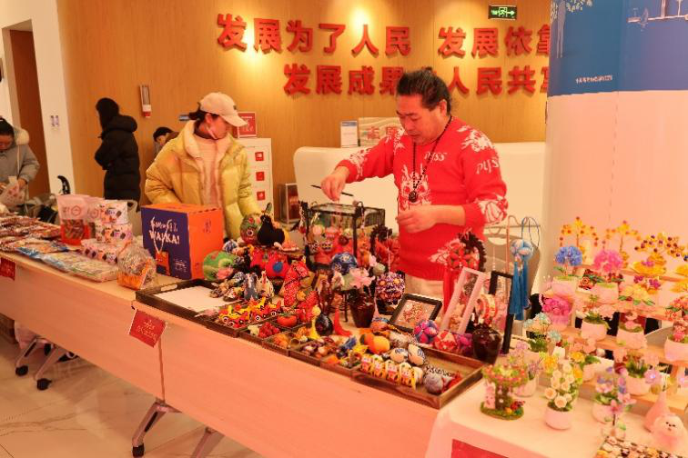活動(dòng)當(dāng)天,市民中心一樓大廳四十個(gè)攤位有序排開,現(xiàn)場(chǎng)人流如織,氣氛熱烈。在“年味好物區(qū)”,手寫春聯(lián)的墨香與精美年畫的紅火相映成趣;轉(zhuǎn)角處的“非遺手作區(qū)”,共建社區(qū)“幸福石嶺非遺手工創(chuàng)益工坊”帶來的編織刺繡精巧別致,泥塑面人活靈活現(xiàn),引得來往市民紛紛駐足;而在“創(chuàng)意文創(chuàng)區(qū)”與“輕食飲品區(qū)”,城市IP衍生品、國潮設(shè)計(jì)飾品與香氣四溢的現(xiàn)磨咖啡、健康零食,則牢牢抓住了年輕群體的目光。創(chuàng)業(yè)者們熱情洋溢地介紹著自己的產(chǎn)品,市民們則手提購物袋滿載而歸,大家紛紛表示,本次活動(dòng)既為零成本的初創(chuàng)夢(mèng)想提供首次試水機(jī)會(huì),又為市民帶來一場(chǎng)匯聚傳統(tǒng)年味與新潮創(chuàng)意的消費(fèi)體驗(yàn),誠意滿滿。