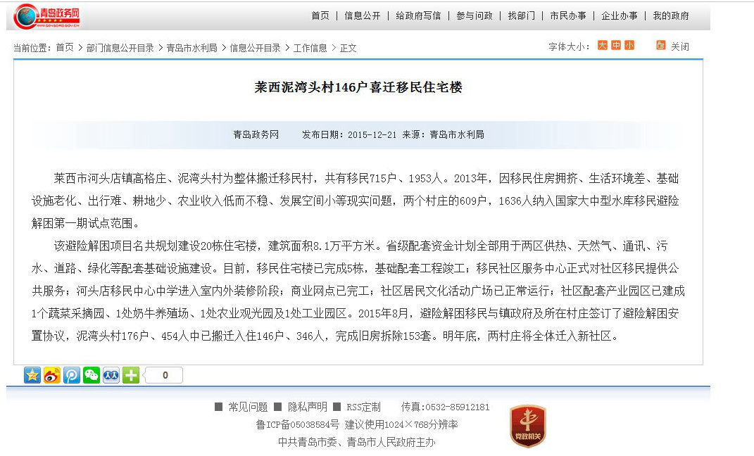 ?。ǘ┘皶r(shí)回應(yīng)社會(huì)關(guān)切。分別于2015年2月和12月,兩次參加市政府組織的事辦實(shí)事新聞發(fā)布會(huì),通報(bào)農(nóng)村規(guī)模化供水相關(guān)情況,發(fā)布權(quán)威信息。健立了輿情發(fā)現(xiàn)、處置和回應(yīng)機(jī)制,第一時(shí)間調(diào)查并妥善處置了黃島區(qū)網(wǎng)民反映寶山鎮(zhèn)水庫干涸飲水困難、黃島區(qū)張家樓鎮(zhèn)小流域整治招標(biāo)中標(biāo)無法開工存貓膩、平度市城子河攔河閘前積水淹沒農(nóng)作物、大沽河上亂修橋過往車輛需交費(fèi)才放行等輿情,消除了不良影響。