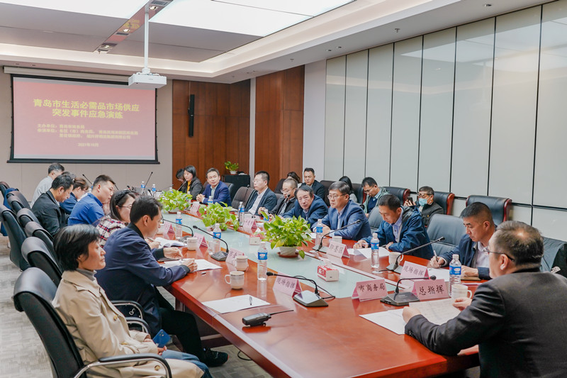 各區(qū)(市)商務局、青島西海岸新區(qū)商務局的分管領導及部門負責人,以及膠州市里岔鎮(zhèn)政府、福興祥物流集團等基層政府、重點市場應急供應保障企業(yè)代表50余人參加演練。