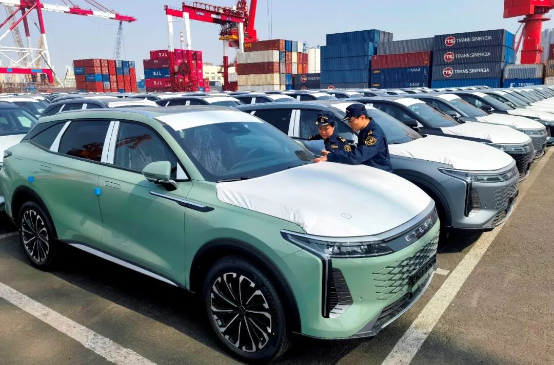 海關(guān)關(guān)員正在對出口國產(chǎn)汽車進(jìn)行現(xiàn)場監(jiān)管。李琳?攝