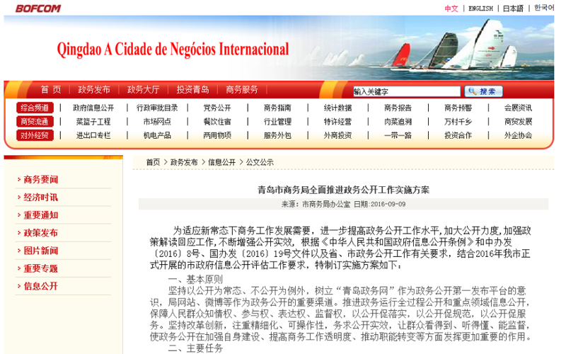 1.完善政務網(wǎng)站建設。我局積極創(chuàng)新信息公開形式,遵循“信息平臺、服務平臺”政務網(wǎng)站建設的構(gòu)建理念和宗旨,把政務網(wǎng)站建設與構(gòu)建服務型機關、提高行政效能緊密結(jié)合起來,做到“服務機關、服務企業(yè)、服務民生”,使其成為充分展示青島市商務工作形象的窗口和政府與企業(yè)聯(lián)系溝通的橋梁。