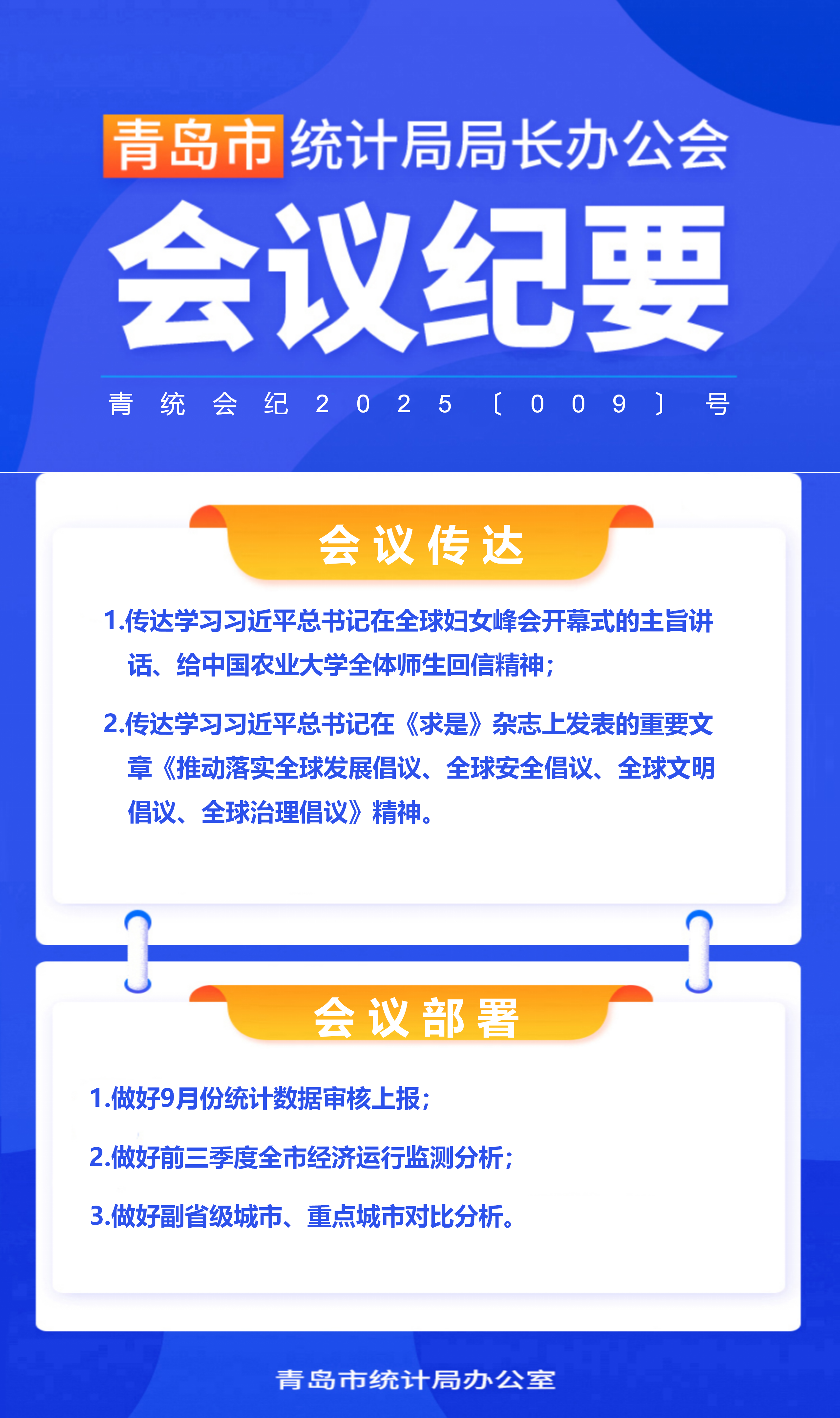 2025年青島市統(tǒng)計(jì)局第9次局長辦公會(huì)會(huì)議紀(jì)要(圖解)