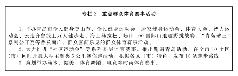 青島市“十四五”體育事業(yè)發(fā)展規(guī)劃