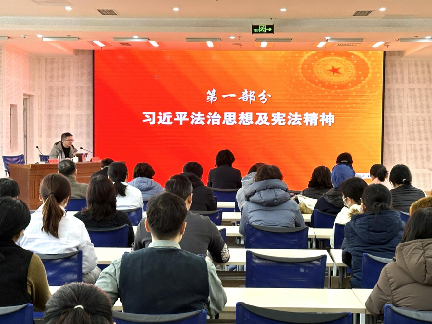 組織專題講座,樹立法治思維。邀請法律顧問俞文峰律師為全院干部職工作《學(xué)習(xí)貫徹習(xí)近平法治思想,大力弘揚憲法精神》專題法治宣講,并結(jié)合日常典型案例講解身邊涉法問題,引導(dǎo)全院職工強化法治思維,增強紀(jì)律意識,守住安全“底線”,守牢法紀(jì)“紅線”。