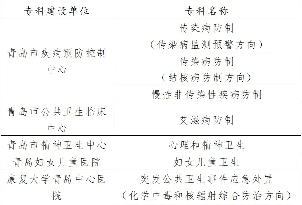 新增山東省公共衛(wèi)生重點專科建設(shè)名單