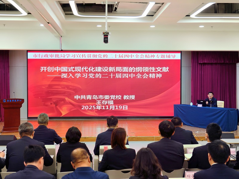 為深入學(xué)習(xí)領(lǐng)會黨的二十屆四中全會精神,引導(dǎo)廣大黨員干部把思想和行動統(tǒng)一到全會精神上來。11月19日,市行政審批局組織開展黨的二十屆四中全會精神宣講會暨青鋒學(xué)堂2025年第十九講,邀請市委黨校政治學(xué)教研部副主任、教授王存福作專題輔導(dǎo)授課。市行政審批局全體黨員、干部,市民中心黨委委員、入駐部門首席代表近300人參加會議。