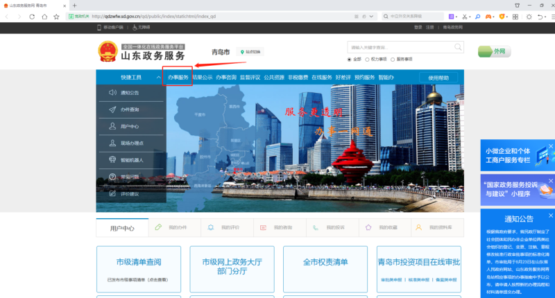 PC端:山東政務(wù)服務(wù)網(wǎng)青島市