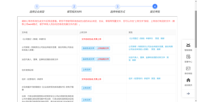 用戶可以根據(jù)情況選擇全程電子化登記或者窗口登記,選擇完成后提交,進入上傳材料頁面,按照要求上傳相應(yīng)的材料: