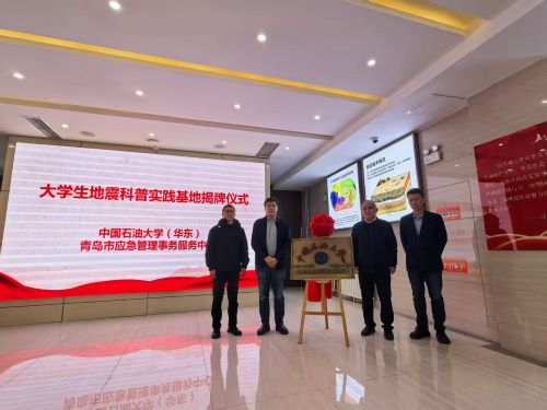 1月30日下午,中國(guó)石油大學(xué)(華東)大學(xué)生地震科普實(shí)踐基地揭牌儀式在青島防震減災(zāi)市級(jí)示范中心舉行。青島市應(yīng)急管理局一級(jí)調(diào)研員王海明、石油大學(xué)地球科學(xué)與技術(shù)學(xué)院院長(zhǎng)宗兆云及西海岸新區(qū)應(yīng)急局局長(zhǎng)沈久波參加儀式,會(huì)后就深化合作開(kāi)展座談。