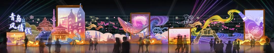40米長“青島風(fēng)情線”大型燈組,以青島獨特的城市風(fēng)貌為核心,將標(biāo)志性風(fēng)景建筑與海洋元素巧妙融合,以璀璨光影重塑青島的山海韻律,領(lǐng)略“紅瓦綠樹,碧海藍天”的極致浪漫。