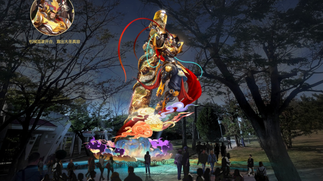 12米高機甲悟空以機械骨骼結(jié)構(gòu)融合非遺自貢彩燈技藝,打造最高動態(tài)機甲燈組。
