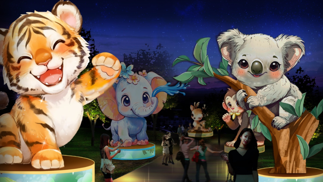 將孩子們天馬行空的畫作打造成立體燈組,與栩栩如生的動物燈組交相輝映,每一盞燈都是一個童趣故事,每一處光影都是一次奇妙邂逅。