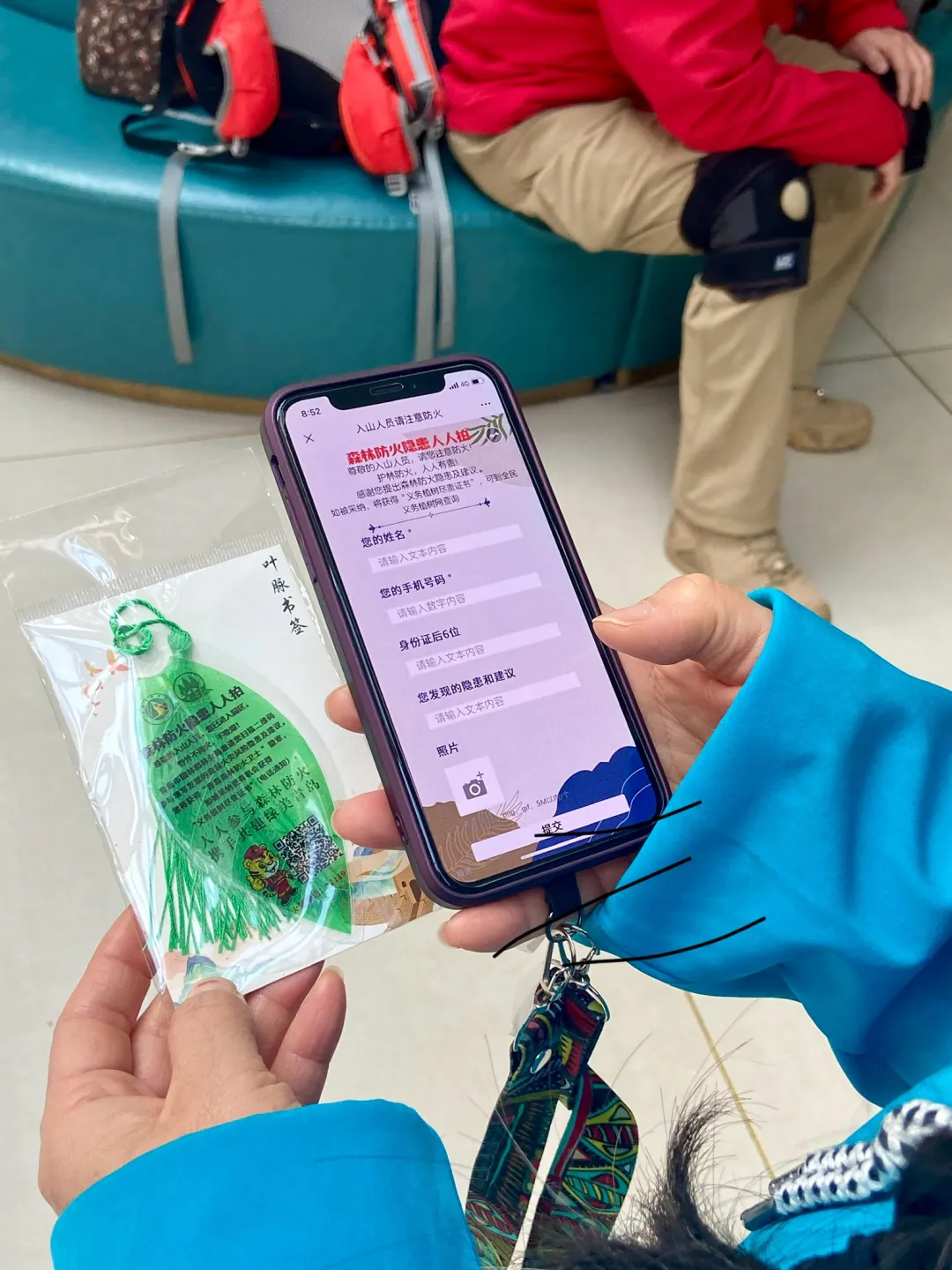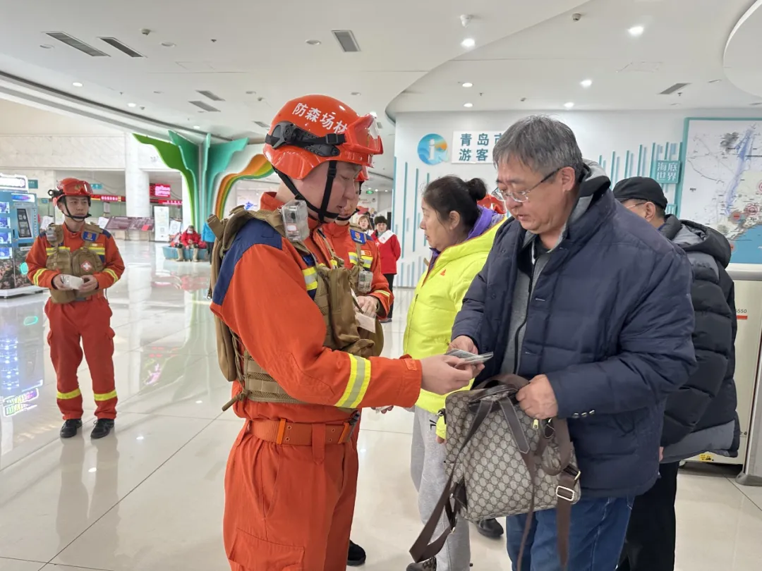 2月21日,在嶗山(大河?xùn)|)游客服務(wù)中心,嶗山林場的森林消防員為游客免費發(fā)放了葉脈書簽,書簽設(shè)計成葉脈形狀,配有“森林防火隱患人人拍”活動的介紹文字和二維碼,鼓勵市民對發(fā)現(xiàn)的森林防火隱患進(jìn)行拍攝,并提出相關(guān)建議。無論是林區(qū)內(nèi)隨意丟棄的易燃物品,還是防火設(shè)施的損壞等問題,都在拍攝范圍之內(nèi),市民只需將拍攝的隱患照片及具體描述反饋至指定渠道,相關(guān)部門就會及時進(jìn)行核實處理。