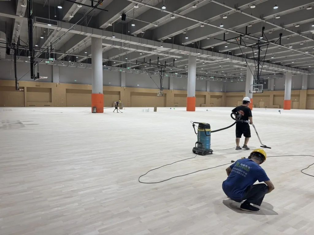在6月5日記者曾來到浮山全民健身中心進(jìn)行探訪,如今這里又有了新的變化。地上部分足球場已經(jīng)鋪設(shè)了草皮。負(fù)一層的籃球場里,覆蓋的地膜已經(jīng)撤掉,工人們正在上漆并打磨地面?!盎@球框可以用電動遙控升上去,后期還會在場地增設(shè)電動座椅,不使用時可以一鍵收起,不占用場地。這片籃球場最多可容納500人觀賽,東北角還用聲光電技術(shù)打造裸眼立體感效果,這也是從奧運會黑科技中取得的靈感?!惫ぷ魅藛T介紹。