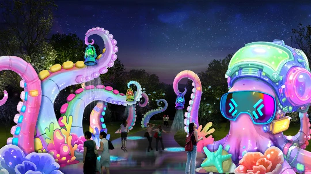 超30米長(zhǎng)巨型章魚、珊瑚藍(lán)水母等燈組,以超現(xiàn)實(shí)想象為筆,結(jié)合“呼吸式”光影變幻,呈現(xiàn)光影交織的深海幻境,帶來(lái)別樣消夏體驗(yàn)。
