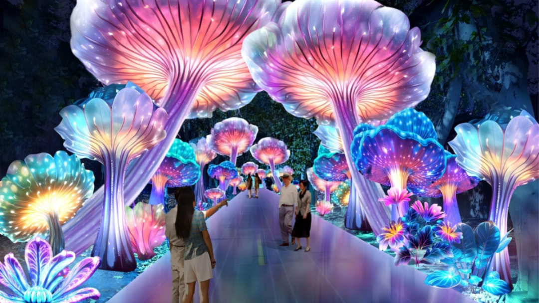 該區(qū)域位于主出入口及櫻花大道沿線,由“海的女兒”“林深見鹿”“煙花璀璨”“花漾青島”“綺夢(mèng)夜航”等大型燈組、氛圍亮化及夜間公園市集組成。