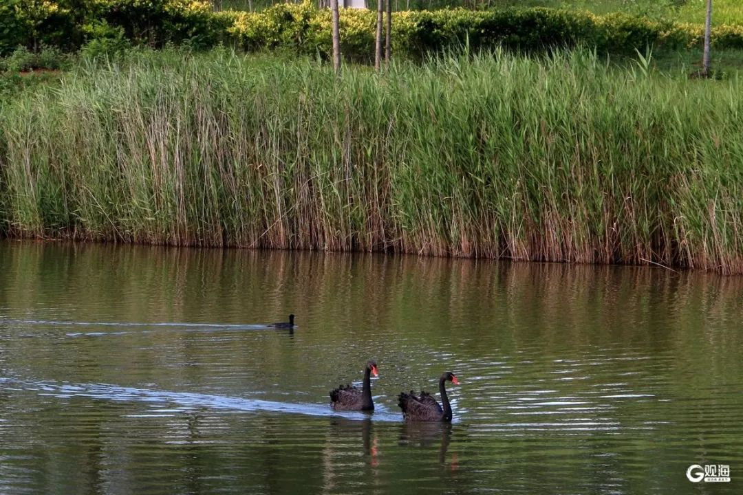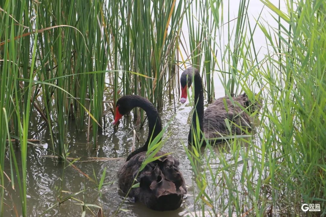 晶瑩的水珠從碧綠的葉尖滑落,墜入澄澈的湖面,漾起圈圈漣漪。黑天鵝優(yōu)雅地游弋在波光粼粼的水面,它們時(shí)而低頭梳理羽毛,時(shí)而將脖頸彎成優(yōu)美的弧度,輕啄水面,蕩開層層碎銀般的漣漪。蘆葦蕩間,鳥兒歡快地啼鳴,清脆的聲音此起彼伏,似是在為這場(chǎng)夏雨的停歇而歡唱。