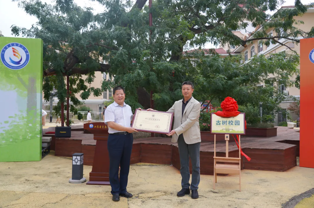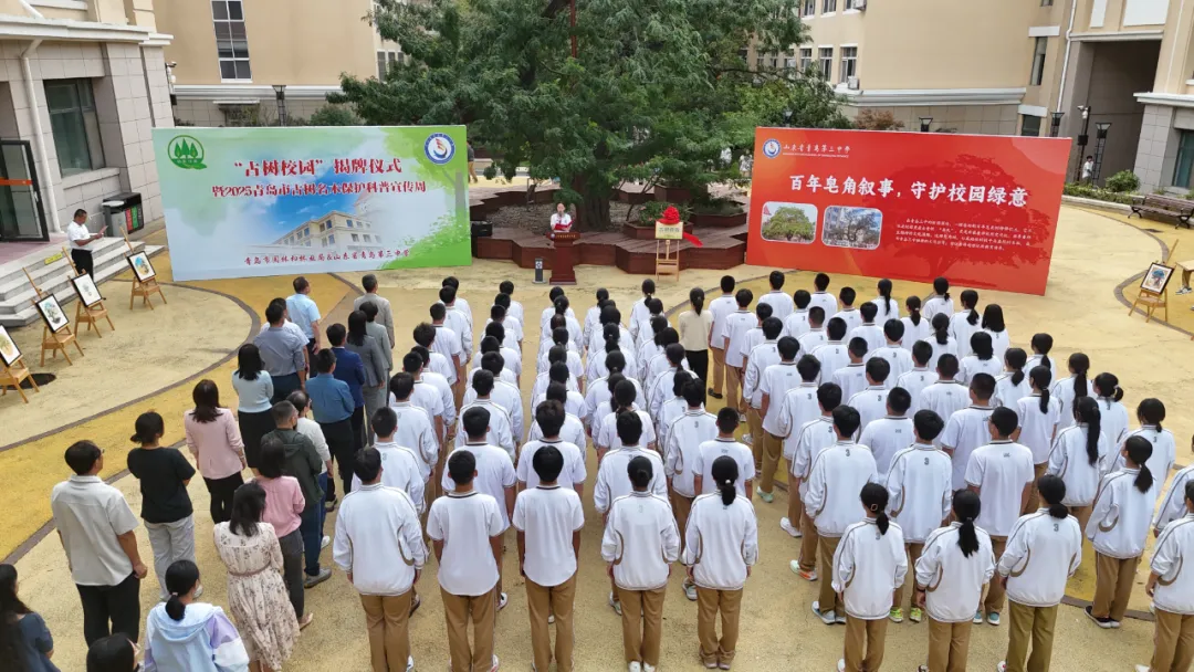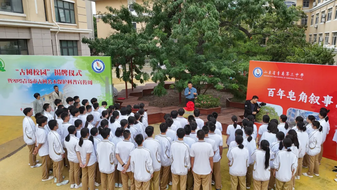 在28日的儀式上,青島市園林和林業(yè)局與青島三中共同為“古樹(shù)校園”揭牌,青島三中成為青島市首所獲此殊榮的學(xué)校。