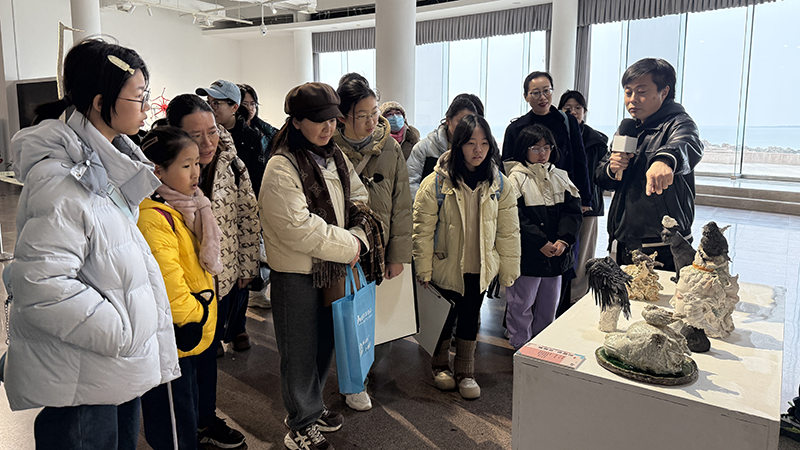 活動首個環(huán)節(jié)“春潮塑韻”亮點十足。“春潮·青島雕塑雙年展”策展人張廷林先生圍繞參展作品,從材質(zhì)肌理、創(chuàng)作理念出發(fā),細致解讀作品中蘊含的“春之氣息”與時代精神?,F(xiàn)場觀眾或駐足聆聽、或拍照記錄,不時與身邊人交流感悟,沉浸在藝術(shù)熏陶之中。