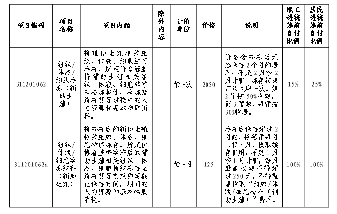 ? ? ? ?附件:組織/體液/細(xì)胞冷凍(輔助生殖)項(xiàng)目價格